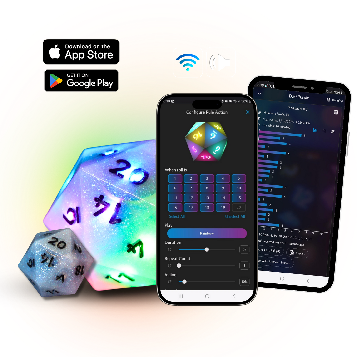 - Enable players to hear what they rolled via the app